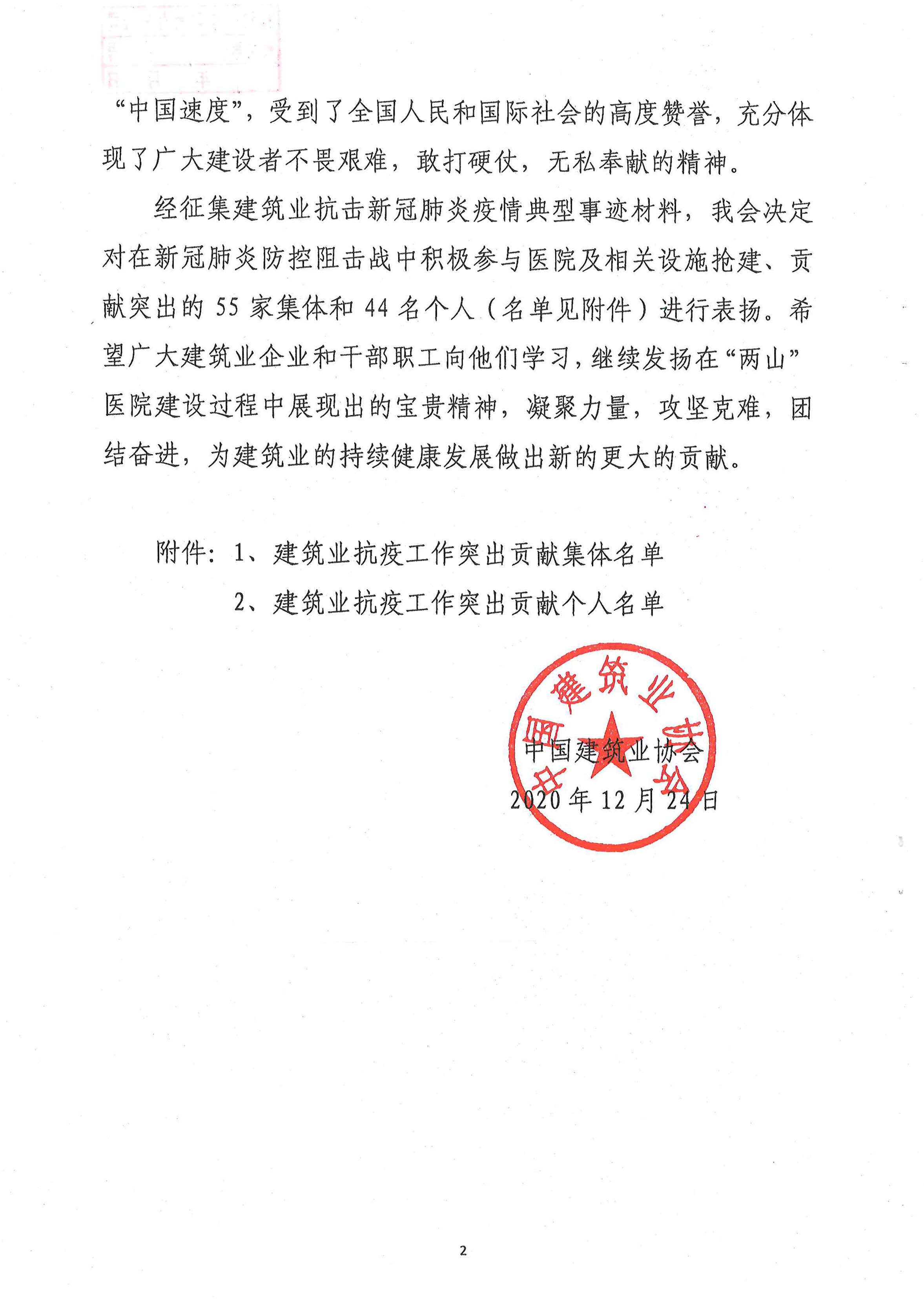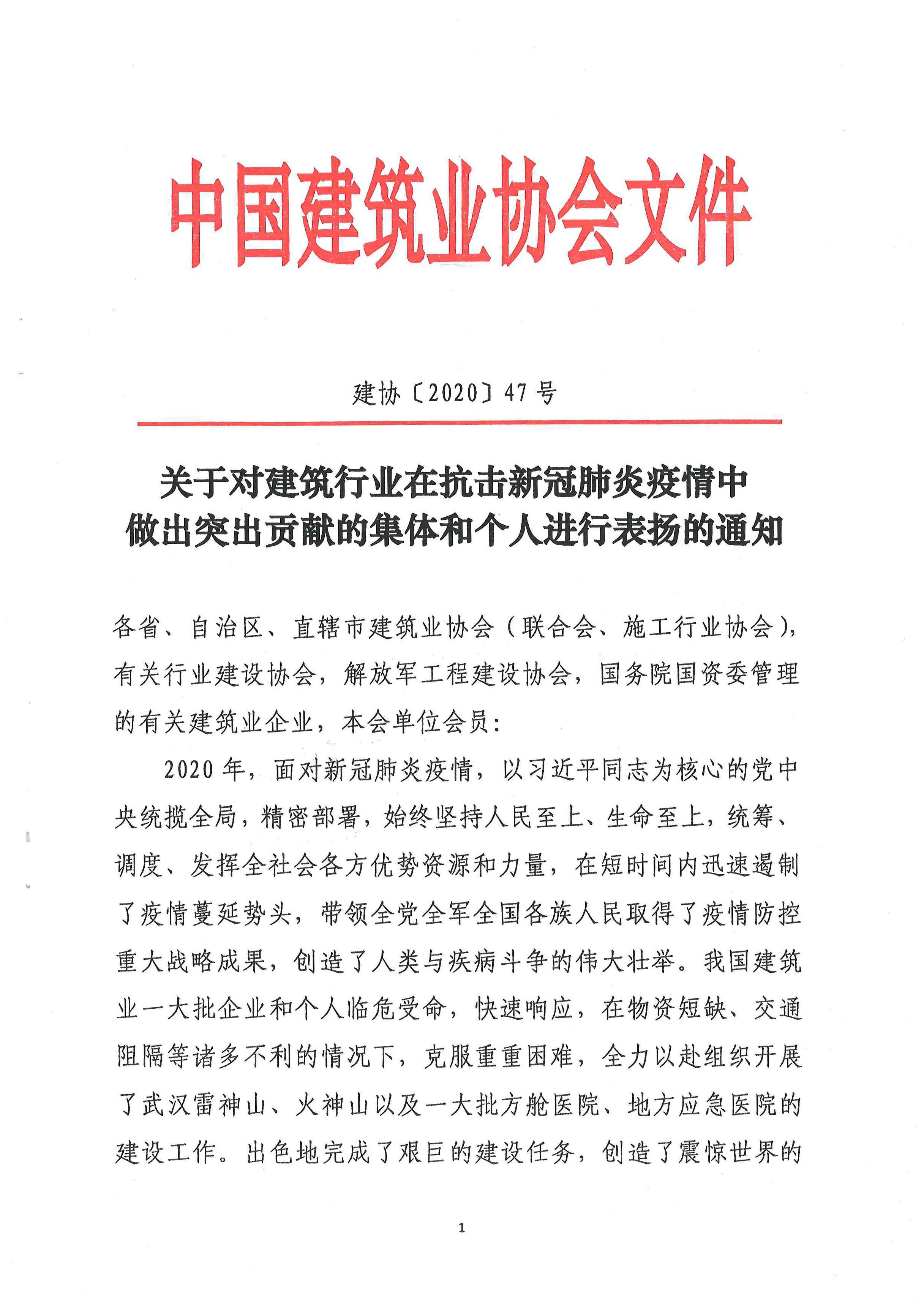 日前,中國建筑業協會對積極參與醫院及相關設施搶建,貢獻突出的集體和個人進行通報表揚,福建一建集團榮列“建筑業抗疫工作突出貢獻集體”名單。