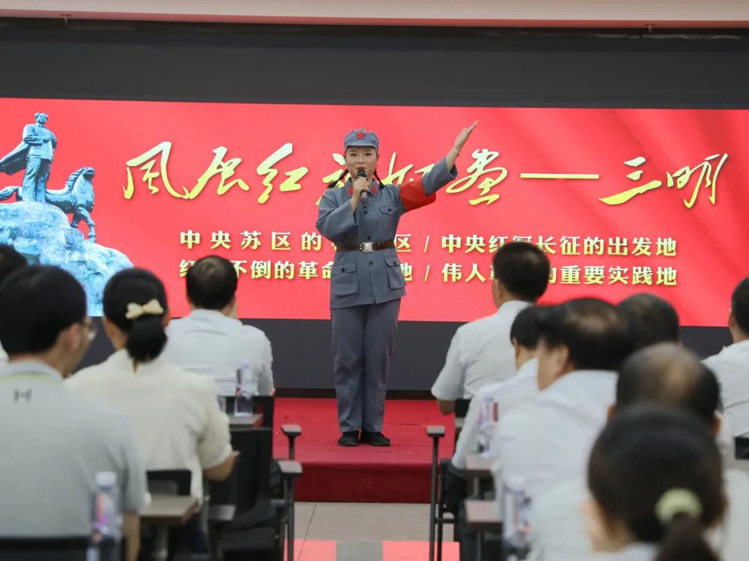 交流會后,開展了“政企聯動,傳承紅色文化”主題黨日活動。在黨建知識競賽環節,雙方代表隊熟練流暢答題,一路上比分不相上下,點燃了比賽的濃厚氣氛,現場觀眾深受感染,增強了對黨的基本知識的了解和認識。紅色故事分享《草鞋計》,福建一集團姜薇聲情并茂地講述了朱德總司令冒著漫天大雪帶幾個戰士偵察探路回來,遭遇團匪,在雪地上把草鞋倒過來穿,引開團匪,安全帶領大家回到駐地,再現了老一輩革命者的勇氣與智慧。三明市政府辦范美煒、林潔儀朗誦《人民就是江山》,深刻闡述了黨的百年歷史,就是一部黨與人民心連心、同呼吸、共命運的歷史。最后,雙方黨員代表合唱革命歷史劇《大決戰》的主題曲《寸心》,充滿激情的歌聲將活動引向高潮。