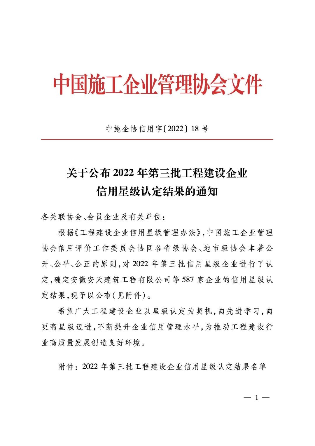 近日,中國施工企業(yè)管理協(xié)會(huì)公布2022年度第三批工程建設(shè)企業(yè)信用星級(jí)認(rèn)定結(jié)果,福建一建集團(tuán)憑借良好的企業(yè)履約行為和信用表現(xiàn),再次順利通過中國施工企業(yè)管理協(xié)會(huì)考核認(rèn)定,并晉升為6星信用企業(yè)。